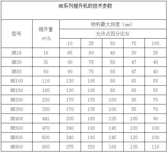 NE15、NE30、NE50、NE100、NE150、NE200、NE300、NE400型提升機(jī)的較大提升量、較大提升高度及動(dòng)力配備